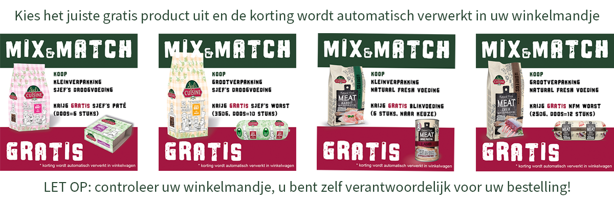 In Sjef's gezellige keuken worden de lekkerste hondenbrokken gemaakt. Maar van ons fornuis komen nog veel meer heerlijke gerechten! Wissel minimaal twee keer per week de brokken af met een warme maaltijd van onze Sjefs's Special producten.